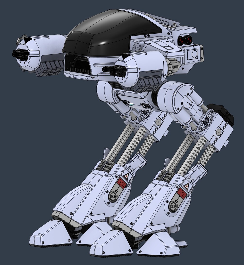 Fully 3d printable model of ED209 in 3 different formats. STL, 3MF, and OBJ.